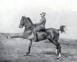 I do not know the fate of the horse in the earlier photo but I believe that the contemporary photo is of a horse that was retired from competition due to suspensory ligament injuries. Tendon and ligament injuries in dressage and reining horses who normally work on manicured level footing in the schooling/show arena tend to be the result of repetitive mild strains that can be ignored until the horse is too lame to work. Such strains are usually a combination of conformation, conditioning and schooling.